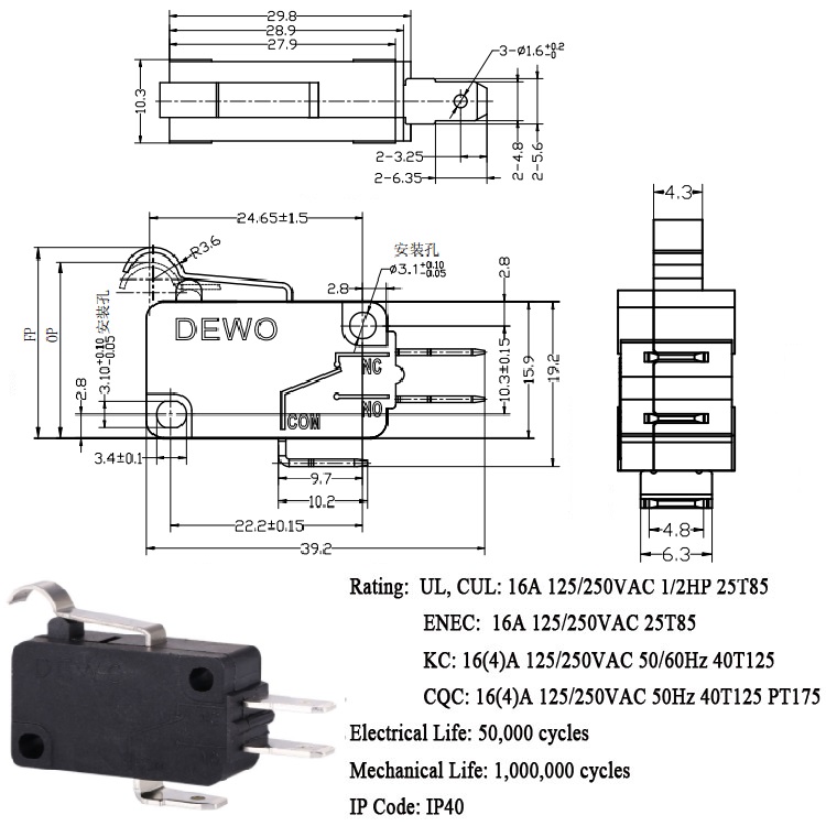 Terminal type:187 quick connect terminal/250 quick connect / Solder terminal/ left side PCB terminal/ right side PCB terminal/ Screw terminal