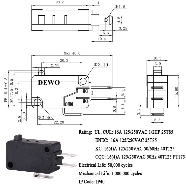 Terminal type:187 quick connect terminal/250 quick connect / Solder terminal/ left side PCB terminal/ right side PCB terminal/ Screw terminal