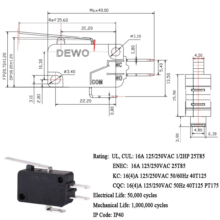 Terminal type:187 quick connect terminal/250 quick connect / Solder terminal/ left side PCB terminal/ right side PCB terminal/ Screw terminal