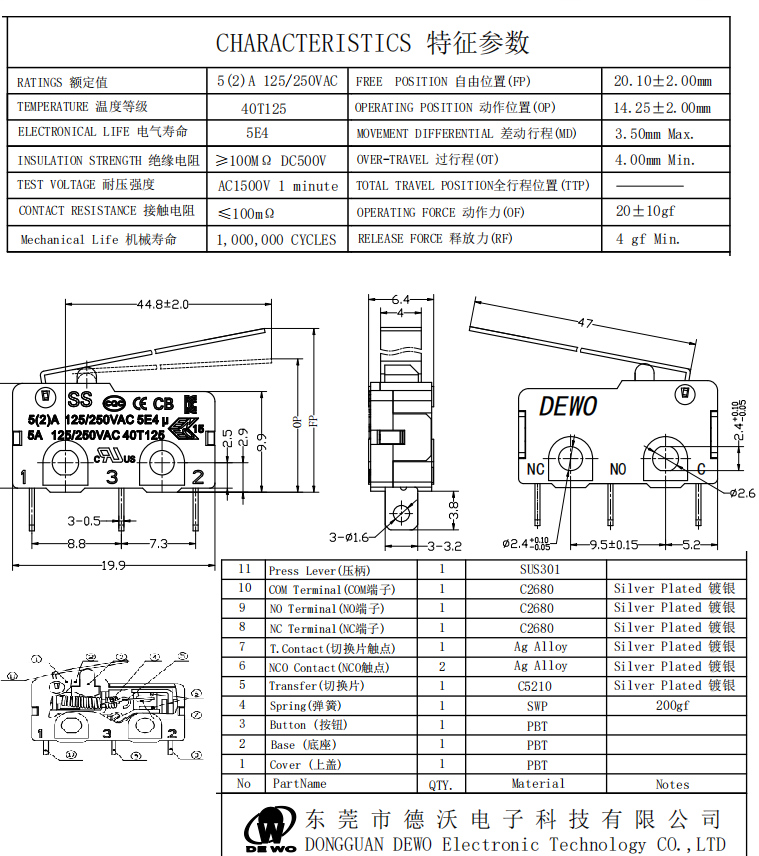 Terminal type: Solder terminal/Straight PCB terminal/110 quick connect terminal/ left side PCB terminal/ right side PCB terminal