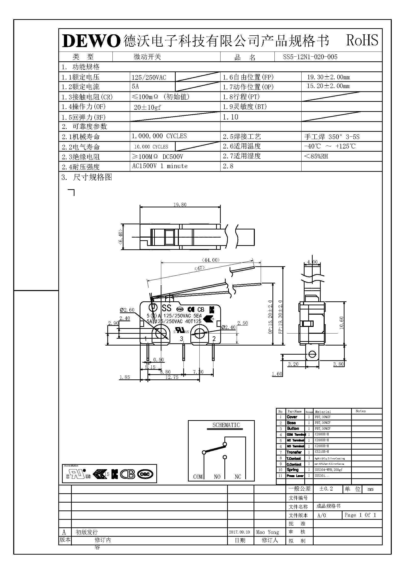 SS5-12N1-020-005微動開關