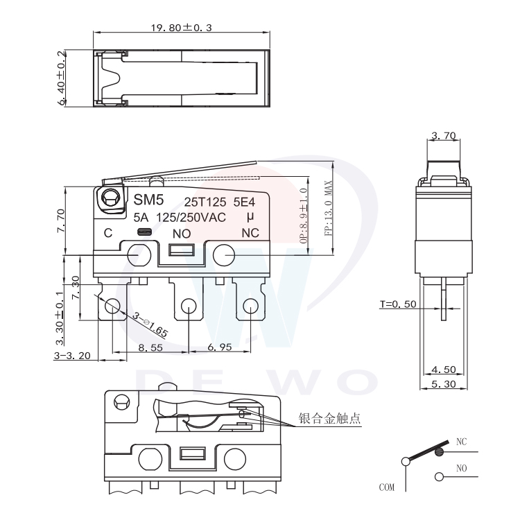 SM5-W01N-40-3彈片型微動開關