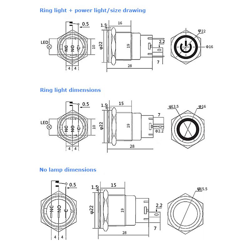 19mm 帶燈金屬按鈕開關
